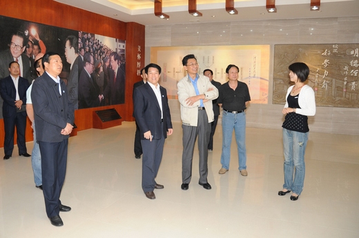刘仁镜一行还考察了学校校史馆、地球科学馆。在校史馆考察时,刘仁镜对学校辉煌的办学历史、鲜明的办学特色、艰辛的办学历程和对煤矿安全生产的突出贡献十分赞赏。他说,从这里不但可以看出河南理工大学高素质创新人才的培养能力以及学校以科技创新推进社会进步的强大实力,还可以看到中国采矿业发展的历史进程。在地球科学馆,刘仁镜一行参观了全部馆藏化石,对珍贵化石标本赞叹不已,不时驻足向陪同专家询问、探究,特别对馆内的“三叶虫化石”“中华狼鳍鱼化石”“地球生物演变痕迹模型”等十分感兴趣,连声说:“很珍贵!”“很丰富!”“很难得!”深深为百年办学的历史积淀和大自然的奇妙叹服。随后,刘仁镜还高兴地与陪同视察的同志一起合影留念。