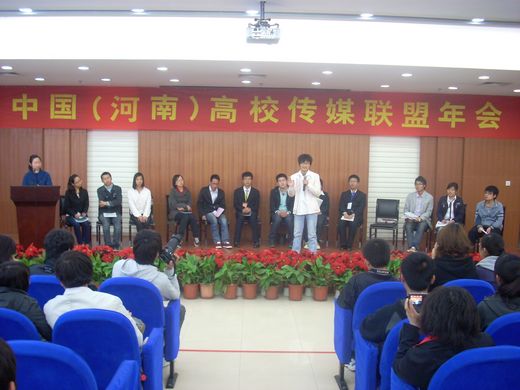4月17日,中国(河南)高校传媒联盟2010年年会在郑州大学举行。共青团河南省委副书记郭鹏,郑州大学党委副书记、工会主席李兴成,中国校媒网副总编、大学生通讯社总干事戴长澜,中国青年报驻河南省站站长韩俊杰出席会议。来自郑州大学、河南大学、河南理工大学等24所高校的100余名校媒记者代表参加了年会,我校记者团团长刘盾代表河南理工大学学生记者参加了此次年会。