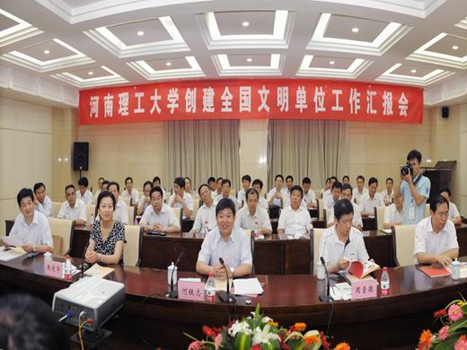 校党委书记王少安最后表示,高等学校是文明的摇篮,是推动社会文明进程的重要力量。而大学自身的文明程度与状态则取决于全体大学人对文明的信仰追求和持续的培育建设。河南理工大学近一个时期以来,以提升学校文明水平、办人民满意大学为根本追求,在省、市文明办的正确领导和精心指导下,全国文明单位创建工作扎实推进并取得预期成效,我们期待专家组的全面检阅与指导、指正,并以此次考评为契机,进一步扎实工作,全面提升创建水平,为高水平大学发展与社会文明进步作出新的贡献。