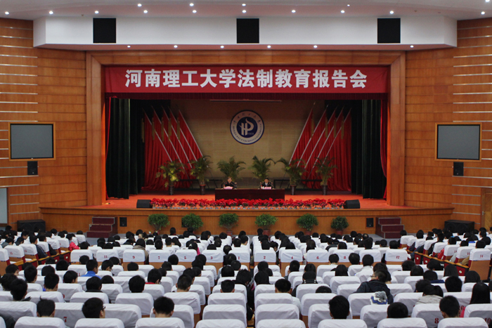 11月22日下午,我校在明德楼音乐厅举行法制教育报告会,我校法制副校长、焦作市中级人民法院刑一庭庭长刘志雷应邀作了题为《增强法制观念,做遵纪守法的大学生》的报告,全校800余名师生聆听了报告。报告会由校党委宣传部部长朱雪里主持。