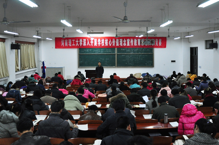 为深入开展学校核心价值理念宣传教育,引导全校师生员工自觉践行以社会主义核心价值体系为根本,以大爱精神为导向,以“明德任责”校训、“好学力行”校风等为支撑的学校核心价值理念,11月29日下午,我校在南校区三号教学楼3107教室举办了深入开展学校核心价值理念宣传教育活动知识竞赛,各党委、党总支选派的140余名教职工代表参加了竞赛。