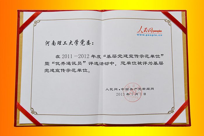 日前,人民网·中国共产党新闻网2011-2012年度“基层党建宣传示范单位”评选结果揭晓,我校党委榜上有名。