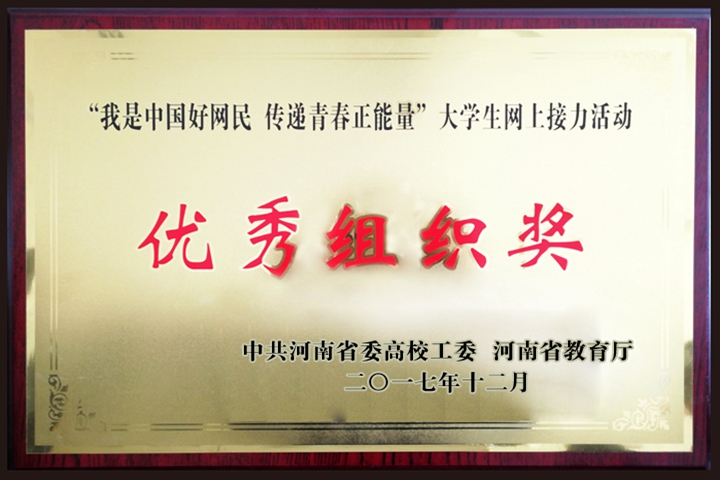 日前,在全省高校“因为有你——我是中国好网民,传递青春正能量”活动中,我校荣获优秀组织奖,校团委阎俊豪、宣传部靳伟娜、土木学院何军3人获得“河南高校好网民”称号。