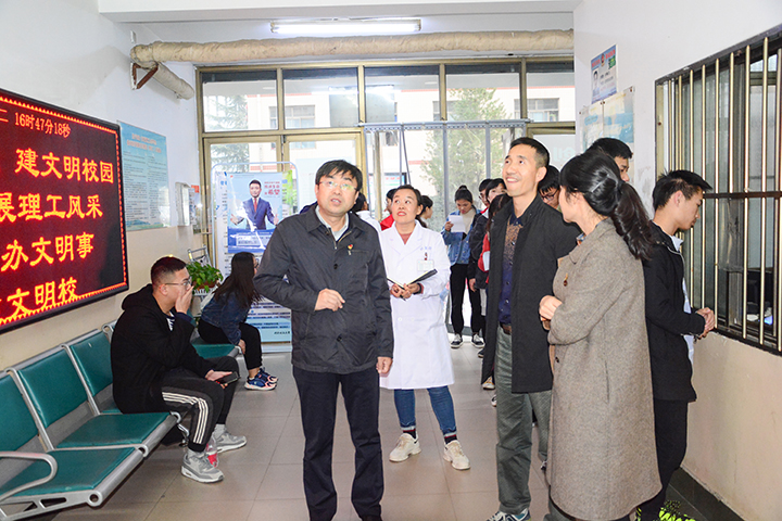 11月12日下午,校党委副书记安士伟带队检查学校省级文明校园标兵创建工作。宣传部、学工部、校团委、后勤处(集团)、保卫处(武装部)等单位负责同志参加了检查。