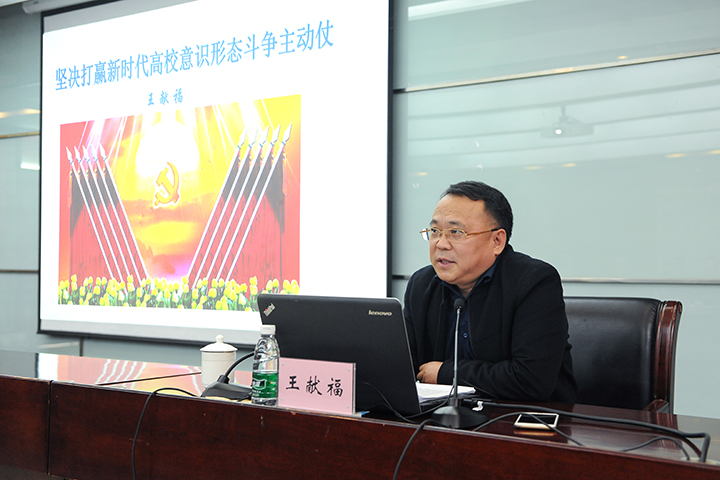 报告中,王献福围绕“深刻认识意识形态工作的极端重要性”“准确把握意识形态工作面临的复杂形势”“切实抓住做好高校意识形态工作的关键点”等三个方面,充分阐述了做好意识形态工作的重大意义和思路方法。报告聚焦党的几代领导人关于加强意识形态工作的基本要求,结合国内外意识形态斗争严峻形势,瞄准高校意识形态领域存在问题和不足,从坚定“主心骨”、种好“责任田”、把握“话语权”、管好“互联网”四个方面,指出了做好当前高校意识形态工作的具体方法路径。报告高屋建瓴、立意深远,内容丰富、事例详实,具有很强的现实性、针对性和指导性。