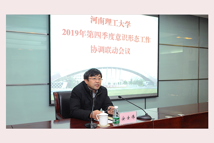 12月6日,学校在明德楼一楼会议室召开第四季度意识形态工作协调联动会议。校党委副书记安士伟主持会议。学校意识形态工作协调联动会议成员单位主要负责人和各党委(党总支)负责同志参加会议。