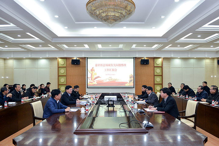 上午,学校在力行楼一楼会议室召开汇报会。校党委书记邹友峰、副书记安士伟,校纪委书记陈自录出席,学校意识形态工作协调联动会议成员单位主要负责人和学院党委(党总支)书记代表参加会议。会议由邹友峰主持。