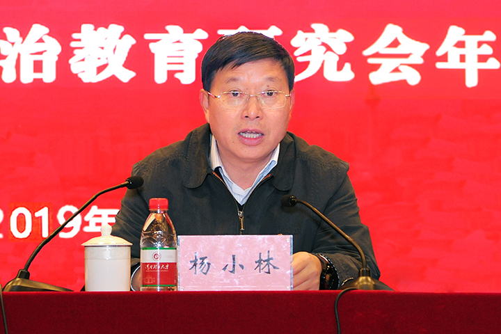 12月31日,学校在南校区小礼堂召开2019年度思想政治工作会议暨思想政治教育研究会年会。校领导邹友峰、安士伟、陈自录、解伟、赵同谦、翟耀南出席会议,校长杨小林主持会议。