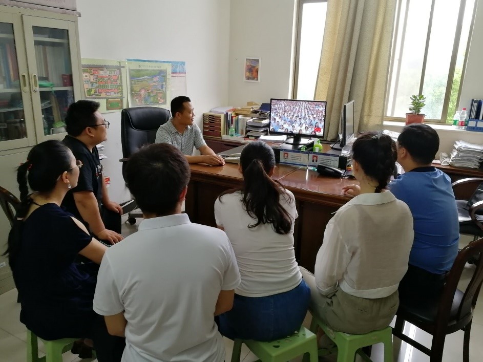 7月1日上午8时,庆祝中国共产党成立100周年大会在北京天安门广场隆重举行。中共中央总书记、国家主席、中央军委主席习近平出席大会并发表重要讲话。宣传部党支部组织全体党员集中观看实况直播,共庆中国共产党百年华诞。